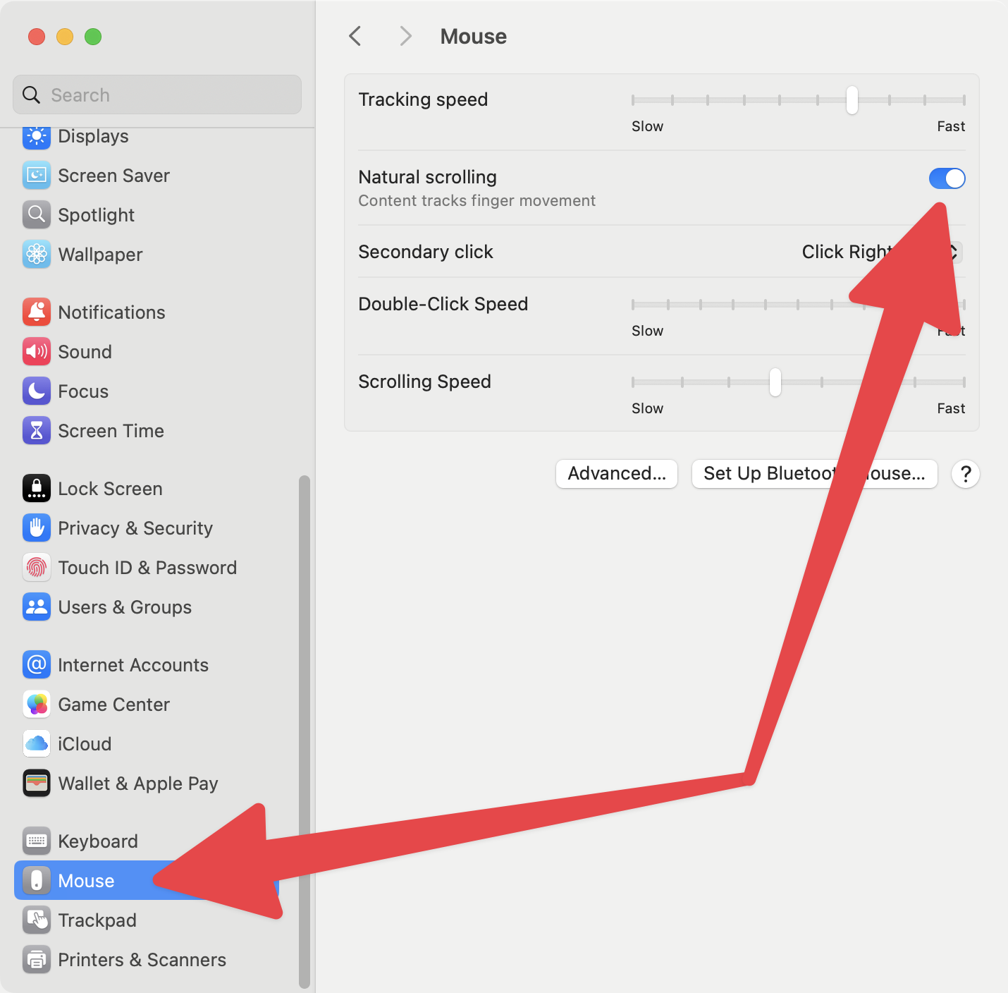 If you own a Mac, and you struggle with the scroll direction of your mouse or trackpad, you can easily change it. Just head into System Settings, then choose either Mouse or Trackpad (depending on your system), and either enable or disable Natural Scrolling, as needed.