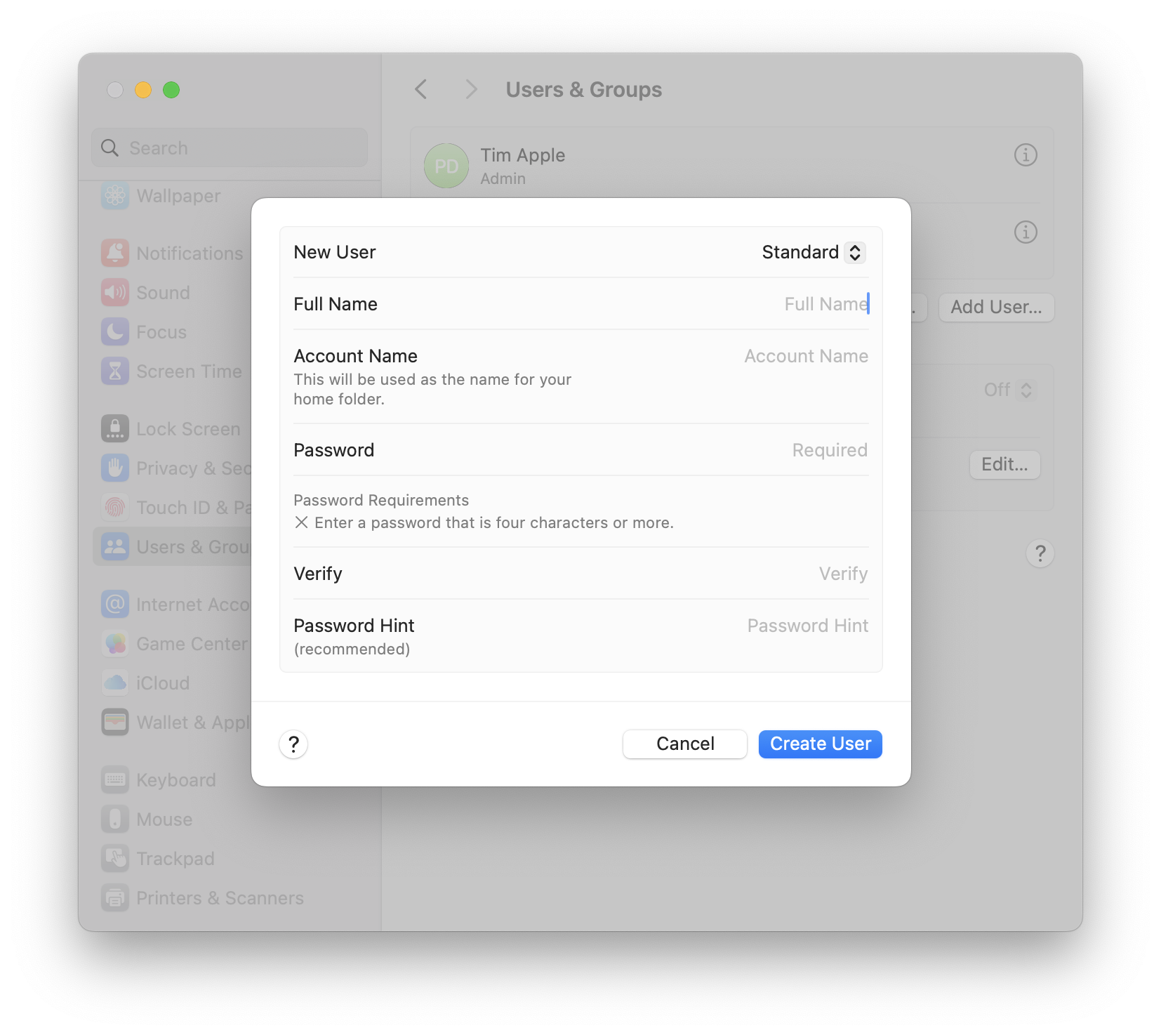 Did you know, you can share your Mac with other people, by adding them as a User. Simply head to System Settings, choose Users & Groups from the left hand side, and then choose Add User. Fill out the form, and you're good to go.